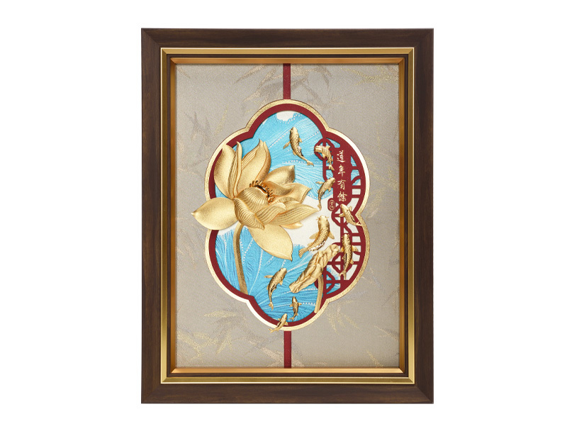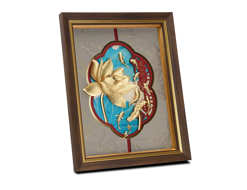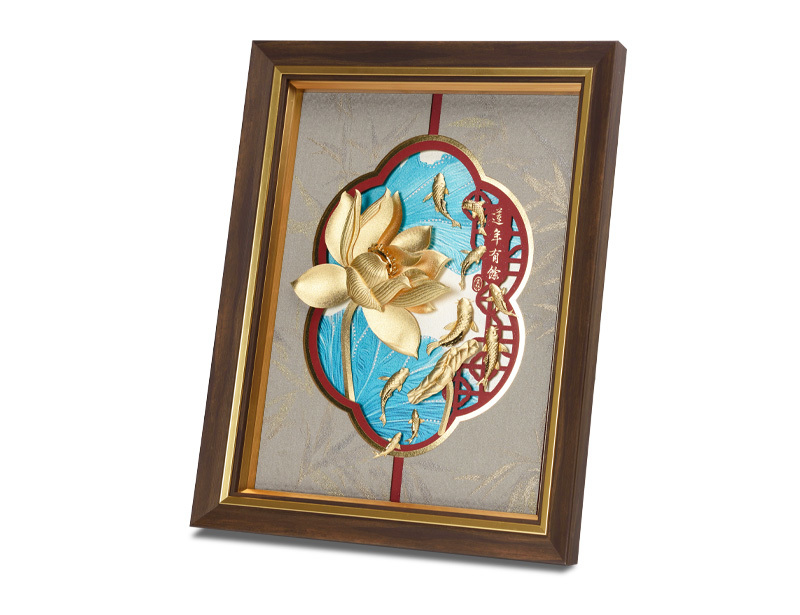 以 典雅端庄 为设计理念,结合立体金箔工艺与独特装裱造型,营造出富含文化韵味的艺术格调。画框比例为 26x33cm,体量适中,适合各类空间陈设。